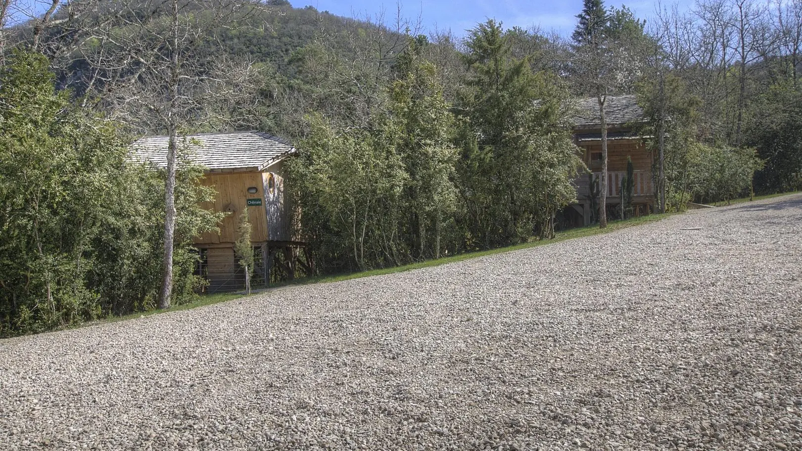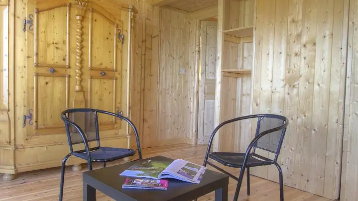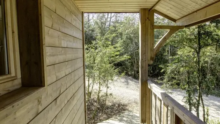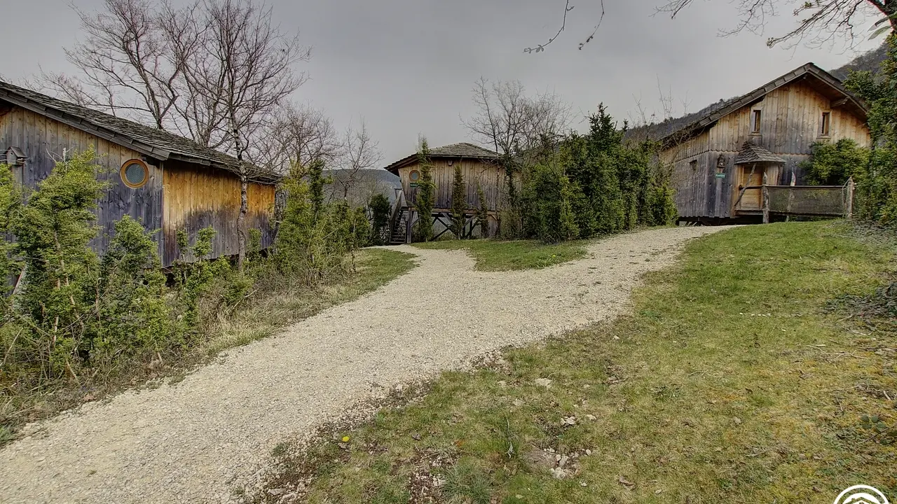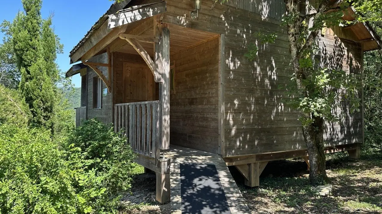 En haut de la colline, se dresse cette 7ème lodge de 50m² qui a la particularité d'être sur 2 niveaux. Vous accédez au Taillet par une "passerelle de plein pied", vous amenant sur l'intérieur de la lodge.