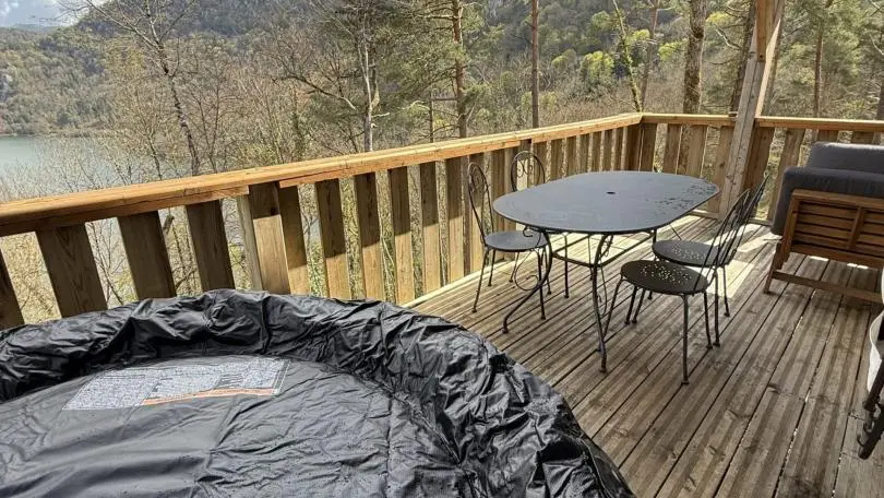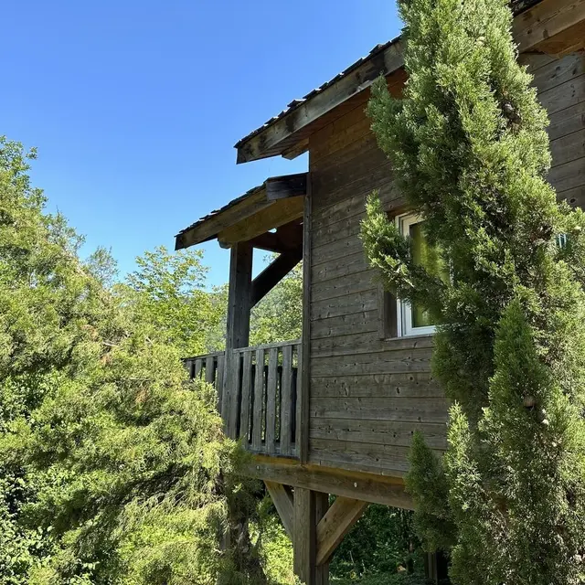 L'accès se fait directement sur la grande pièce de vie, les 2 grandes baies vitrées la prolongent sur la terrasse rectangulaire de 17 m² avec vue plongeante sur la Rivière d'Ain. Aux beaux jours, la terrasse vous permettra de profiter du soleil en après-midi et une partie de la soirée. La pièce de vie principale à l'ambiance vert printemps est aménagé d'un espace repas "ambiance jardin" et, le soir, se transforme en pièce à sommeil avec son couchage pour deux personnes (lit en 150 cm) intégré dans un rangement/placard mural. La mezzanine, ouverte, composée de deux lits 90 cm dont l'accès se fait par un escalier "étroit" donne également sur la pièce de vie. Son accès cocooning permet une véritable intimité. A l'écart de la pièce de vie, au pied de l'escalier de la mezzanine, se trouve une kitchenette pratique tout confort avec 2 plaques vitro céramique, un petit frigo avec espace congélateur et le micro-onde. L'accès à la salle d'eau se fait de la pièce de vie. Un kit avec les produits de " base " vous est remis à votre arrivée. Le Betet également fait partie d'un site " nature " comprenant au total 7 cabanes et lodges complètement intégrées dans cette forêt de buis, niché sur les hauteurs de Serrières sur Ain, en aplomb de la rivière d'Ain. Chaque cabane à sa propre identité et est construite sur piloti à 2m du sol, les accès et terrasse sont entièrement sécurisés. Site d'exception, dans les gorges de l'Ain, permettant la pratique du canoë, aviron ou simplement baignade. En hauteur sur les falaises, possibilité de randonner, avec GR et PR.