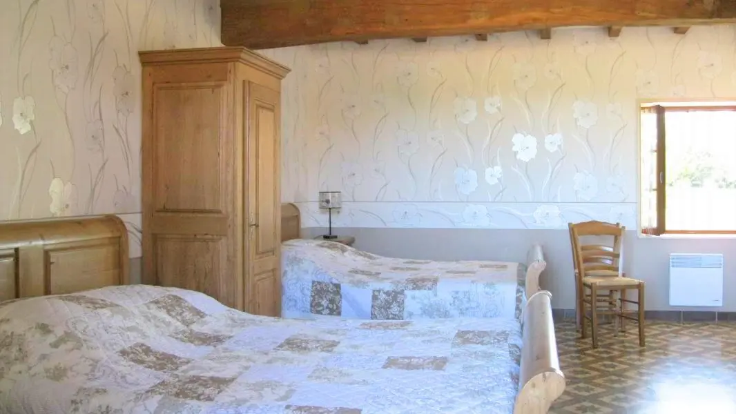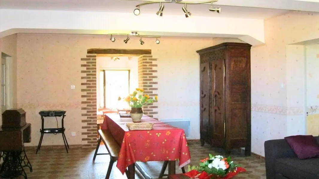 Gîte mitoyen (110 m²) rénové dans une ancienne ferme qui se situe entre les Dombes, la Bresse et les vignobles du Maconnais et du Beaujolais. Cuisine indépendante avec accès sur terrasse. Une chambre composée d' 1 lit de 140 et 1 ch de 2 lits de 140. 1...