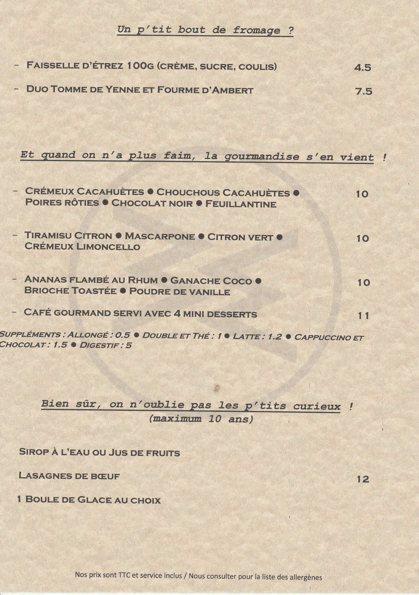 Restaurant ouvert du mardi au vendredi et le dimanche pour le service de midi et les vendredis et samedis soirs.