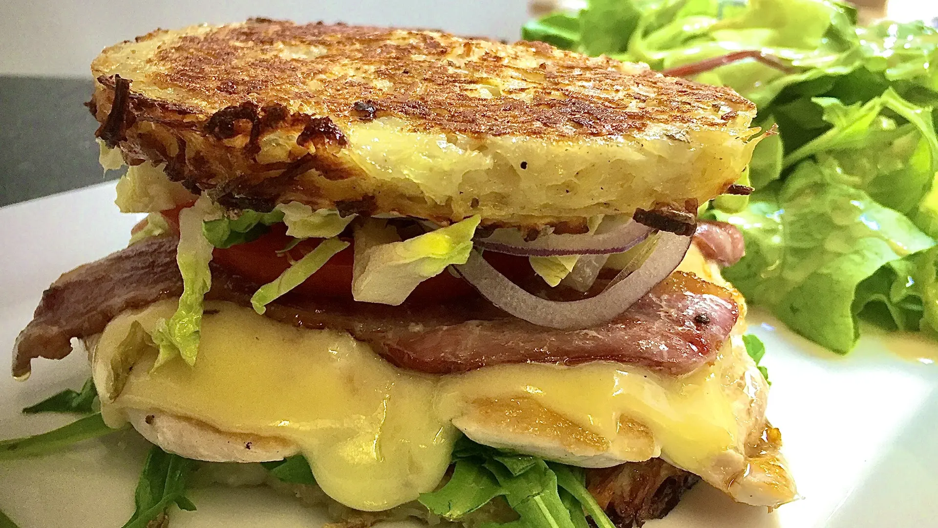 Découvrez le burger gourmet revisité sans pain, remplacé par deux galettes de pommes de terres croustillantes et moelleuses à cœur et surtout pas grasse "Les criqs'". Les burgers sont garnis de bœuf charolais haché minute, de magret de canard, de saumon bomlo..., ainsi que de fromages AOC et de sauce maison.