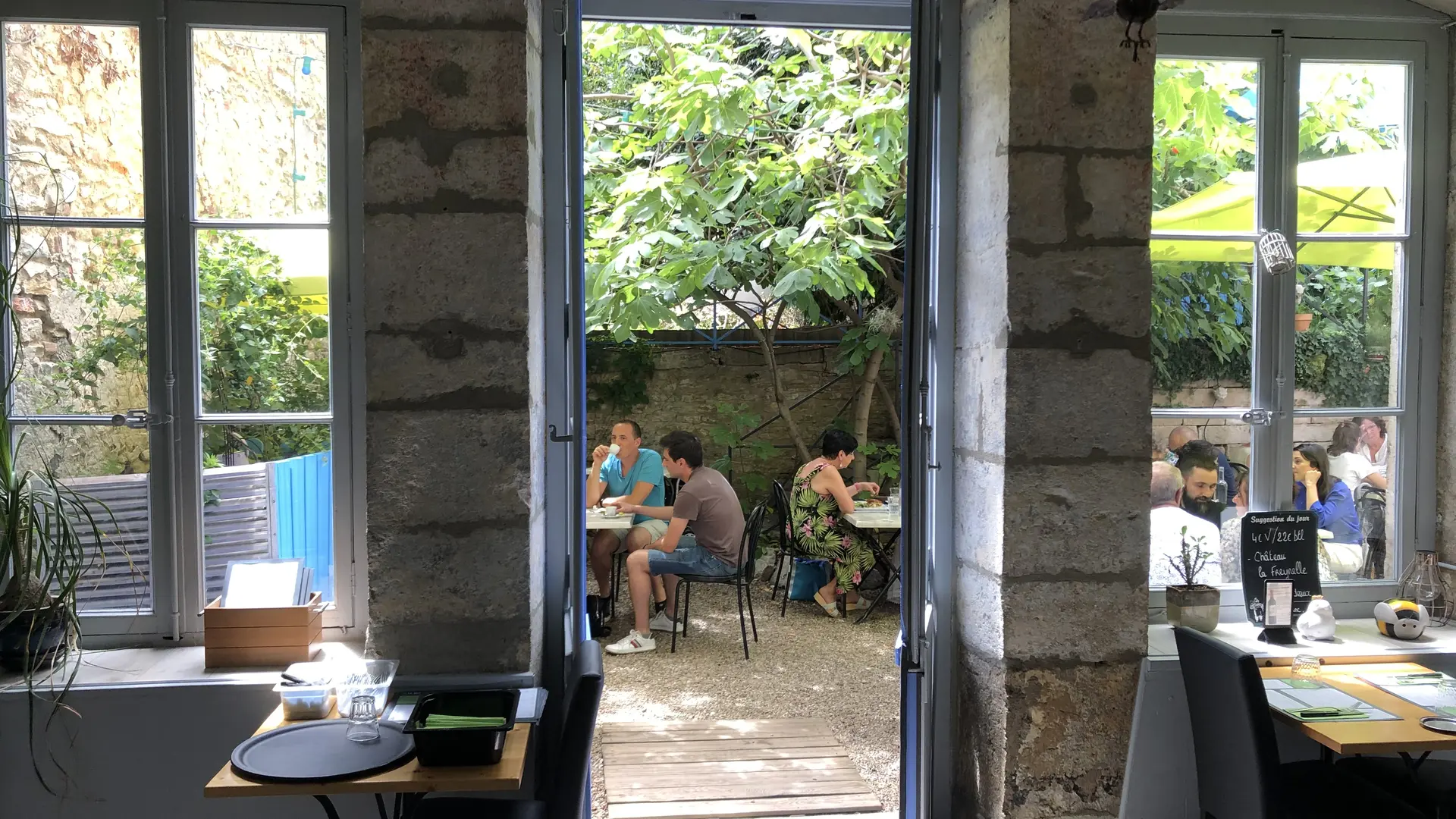 Plusieurs espaces à votre disposition : une salle lumineuse, une salle avec télévision pour les grands événements et d'un salon reposant ouvert sur une grande terrasse ensoleillée.