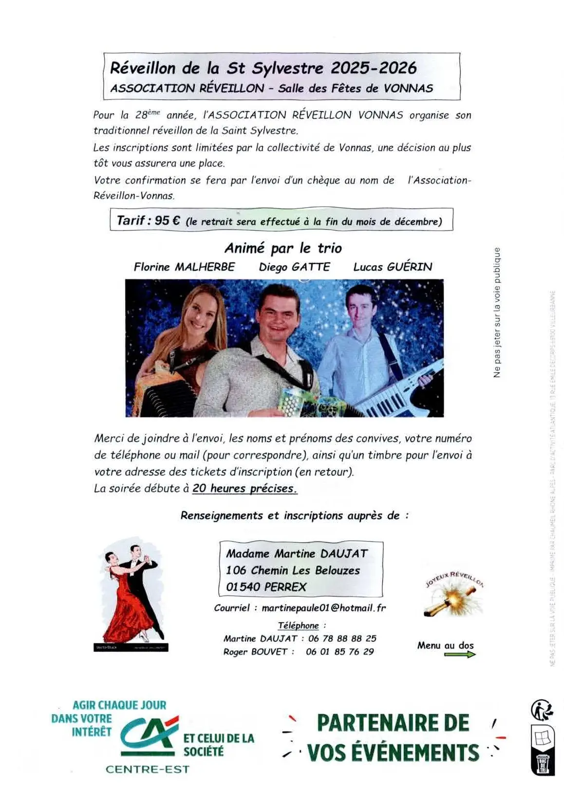 Réveillon de la Saint Sylvestre 2025 animé par animé par : Diego Gatte, Florine Malherbe et Lucas Guérin