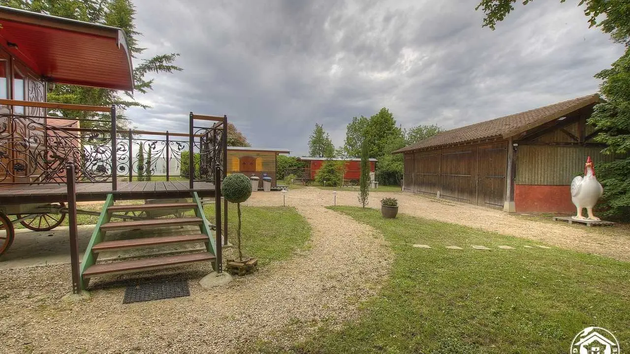 A proximité d'une maison forte du 16ème siècle, dans un espace de verdure et de calme, deux roulottes équipées pour un agréable séjour.