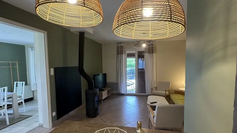 Après vos escapades, retrouvez le calme et la douceur de votre maison de vacances. L'ambiance est chaleureuse grâce à son poêle à bois, qui invite à la détente. À l'extérieur, les aménagements s'installent progressivement, mais déjà, la campagne vous tend les bras pour savourer des instants au grand air.