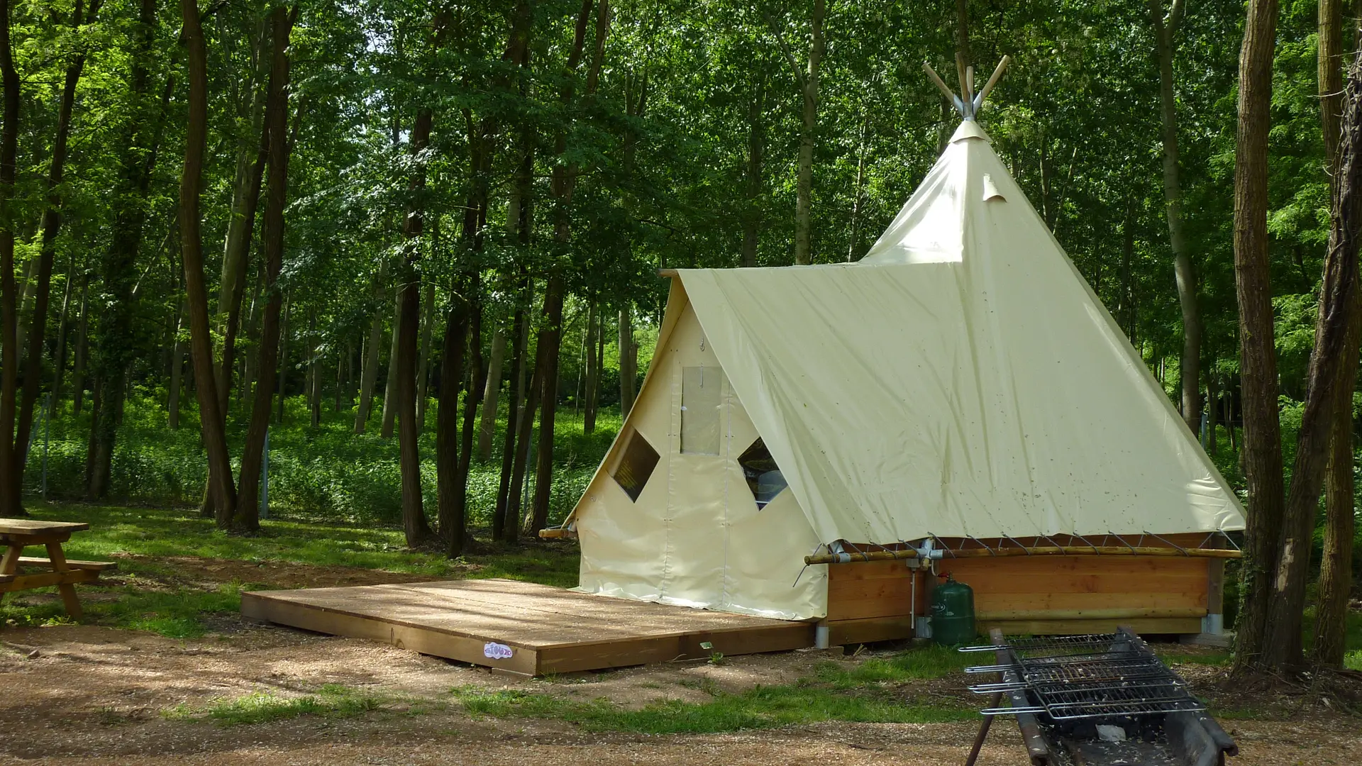 Hébergement original, six tipis équipés pour 4 personnes (cuisine, chambres séparées, terrasse, sanitaires du camping). L'esprit de cette habitation de loisir est d'allier le plaisir de camper avec tout le confort nécessaire.