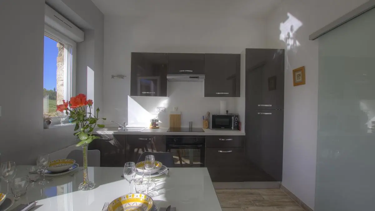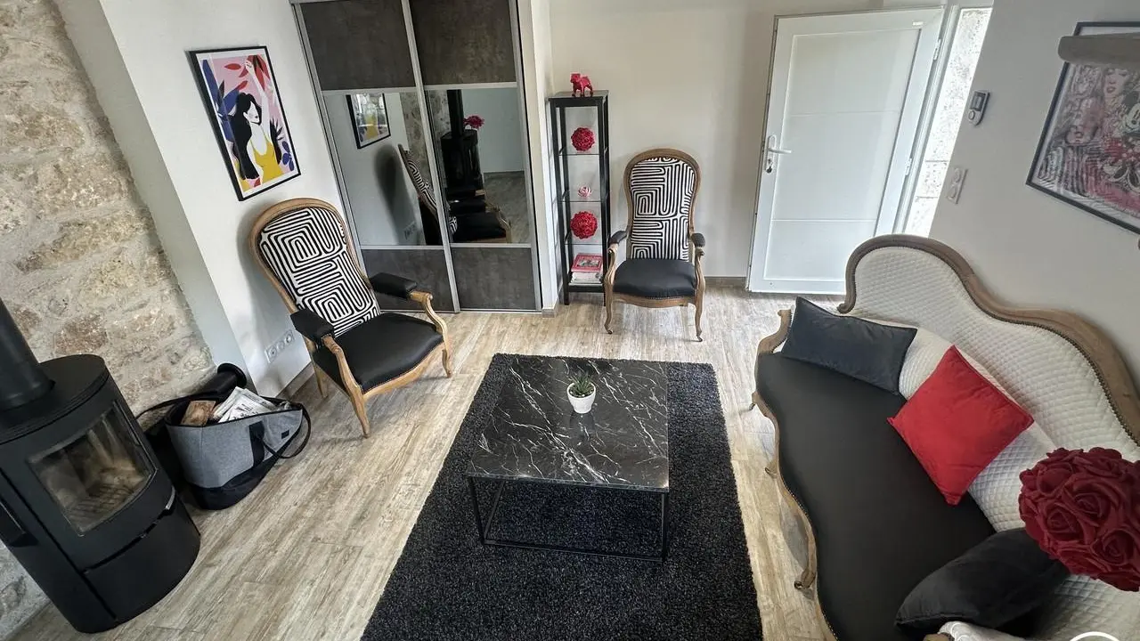 Accès sur un salon avec poêle à bois, trois marches plus bas, cuisine très bien équipée avec accès sur la terrasse; salle d'eau à l'italienne avec wc intégré. A l'étage, une chambre en mezzanine comprenant deux lits 90*200, chambre spacieuse avec un lit 160*200. Une cave voûtée à votre disposition. Ce gîte a été rénové et décoré avec des matériaux de qualité. Chauffage bois et électrique (bois offert). Sur place : sentiers pédestres, loisirs à proximité : parapente, parcours trail, pêche, etc..., ainsi que des visites découvertes (grottes de Cerdon, glacières de Sylans, Lac de Nantua, musée de la Résistance et du Peigne, les marmites de Géants, etc...).