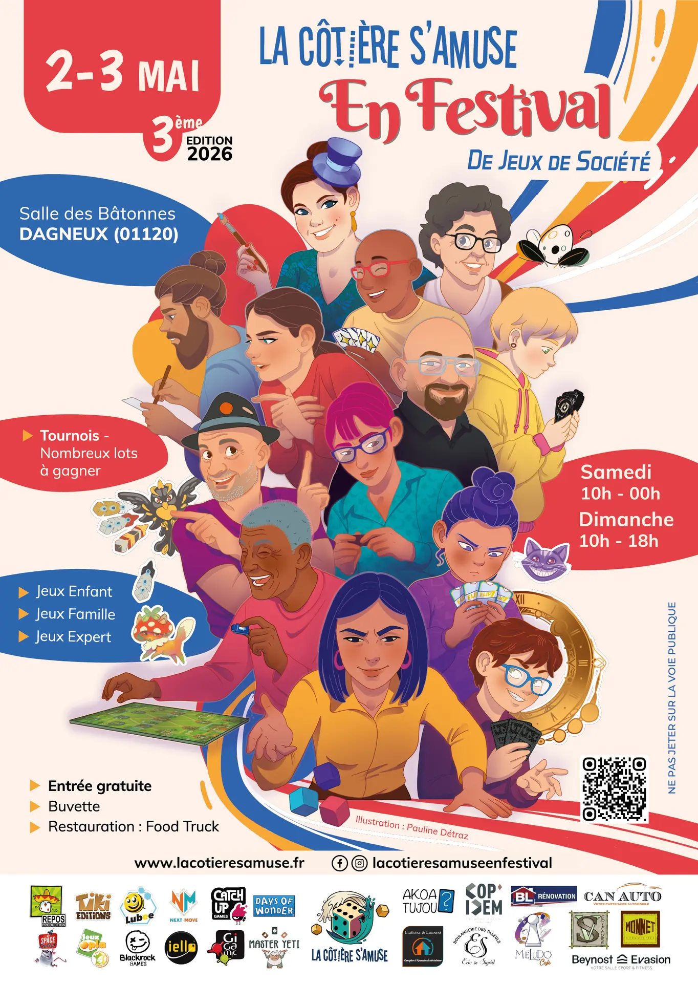La Côtière s’amuse en festival revient pour sa 3ᵉ édition ! 2 jours dédiés au jeu de société : nouveautés, tournois et des auteurs et illustrateurs présents pour dédicaces. En famille, entre amis ou passionnés, venez jouer et partager un moment ludique.