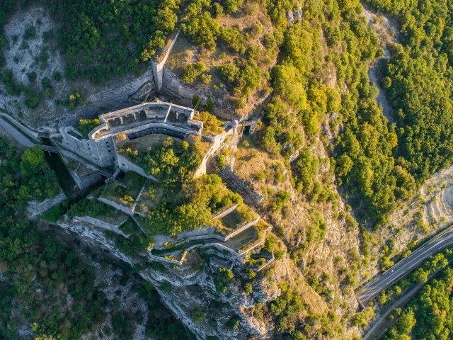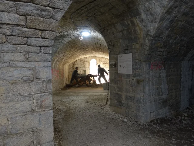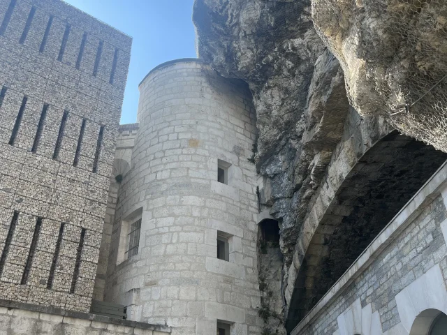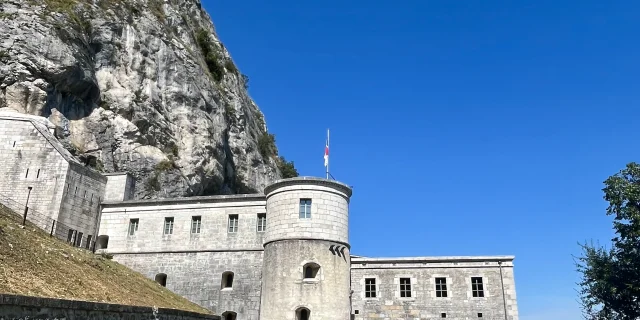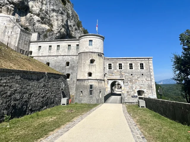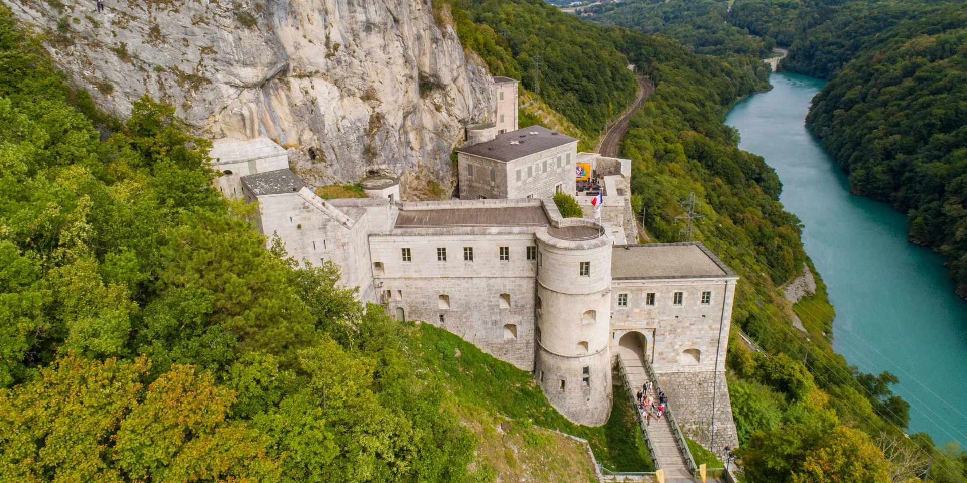 Incroyable, bâtie à flanc de falaise, la place forte de Fort l’Écluse surplombe le paysage. Massive, avec ses deux niveaux, la forteresse impressionne.