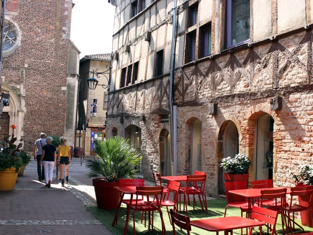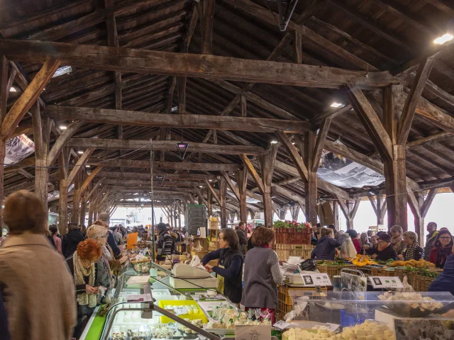 C’est vivant, plein de couleurs et de vie ! La halle, elle-même, attire le regard avec ses colonnes et sa charpente du 15e siècle. Son architecture de belles dimensions, où les regards aiguisés découvriront quelques sculptures amusantes, témoigne du passé commerçant et de la richesse médiévale de la ville. Les vestiges de remparts, les maisons préservées ou encore la porte de Villars racontent l’histoire d’une ancienne place forte des comtes de Savoie, mais où les citoyens libres, commerçants et artisans, tenaient le haut du pavé.