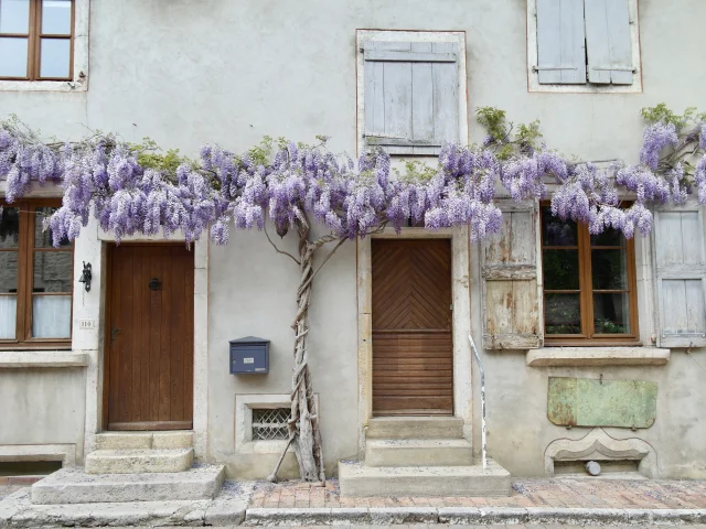 L’imposante halle, cœur battant du village, a été rebâtie au 19e siècle suite à un incendie, bien qu’elle date en réalité du 14 tout comme l’église Notre-Dame de l’Assomption qui domine le village avec son portail gothique ouvragé. Au fil des ruelles fleuries, gardez l’œil ouvert pour repérer les 7 fontaines du village (les becs d’évier dépassant des façades) et la maison à pont.